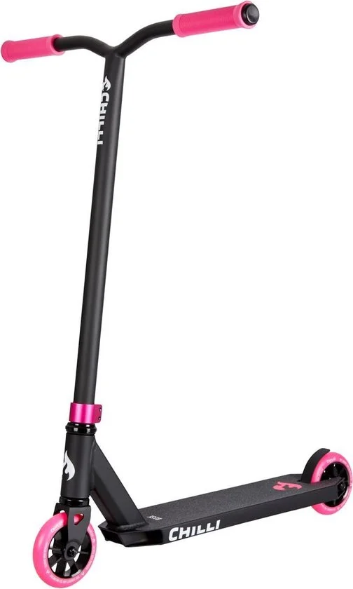 Het nieuwe Chilli Pro Scooter model Base is de instapstuntstep voor elke beginner. Onverslaanbaar in dit prijssegment, je krijgt de beste materialen en je kunt direct de straat op. De Base biedt iedereen de mogelijkheid om de stuntstep uit te proberen zonder aan kwaliteit te moeten inleveren. Het deck is gemaakt van het beste 6061 aluminium, 50 cm lang en 11,5 cm breed. Dit geeft je voldoende ruimte om op het deck te bewegen en stevig te staan. Het stuur is gemaakt van 4130 ChrMo staal en 58cm hoog en 58cm breed. De prachtige stalen vork maakt het klassieke design van de step compleet. Voor compressie gebruiken we in dit model een universele HIC om gewicht te besparen. Dit zorgt ook voor de prachtige HIC aluminium 2-bouts klem. Als lagers hebben we afgedichte losse kogellagers gebruikt. De kleurafstemming van de handgrepen met de PU-roller is ook aantrekkelijk. De wielen zelf hebben een diameter van 110 mm en de kern is ook gemaakt van het beste 6061 aluminium. De flex-rem is gemaakt van staal en wordt van bovenaf gemonteerd.