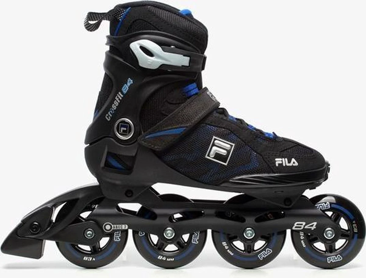 Fila heeft met het Crossfit 84 model een compleet nieuw model lichtgewicht skate geïntroduceerd met 84 mm wielen, welke geschikt zijn voor de beginnende tot gevorderde skater. De Fila Crossfit 84 unisex skates zijn geschikt voor skaten op een gemiddeld tempo en zijn door het korte aluminium 6000 frame van 27,5 cm. erg wendbaar. Het aluminium frame zorgt voor een goede energie transfer naar de wielen en ABEC7 lagers en rollen soepel. Deze skates zijn voorzien van een semi-soft schoenen, welke comfortabel dragen en toch de steun bieden die benodigd is tijdens het skaten. De semi-softboot schoenen zijn vervaardigd uit een duurzaam kunststof en een polyester mesh voor goede ventilatie. De kunststof delen bevinden zich vooral rond het enkelgewricht en in de onderkant van de schoen om stevigheid en stabiliteit te bieden. Om de schoen goed om de voet te sluiten, is de Crossfit 84 uitgerust met veters, klittenband en een powerbuckle met kliksysteem. Deze Crossfit 84 skates zijn uitgerust met wielen met een 83A hardheid, welke genoeg demping / vering bieden voor de allround skater. Dankzij de ABEC7 lagers rollen de wielen uitstekend.