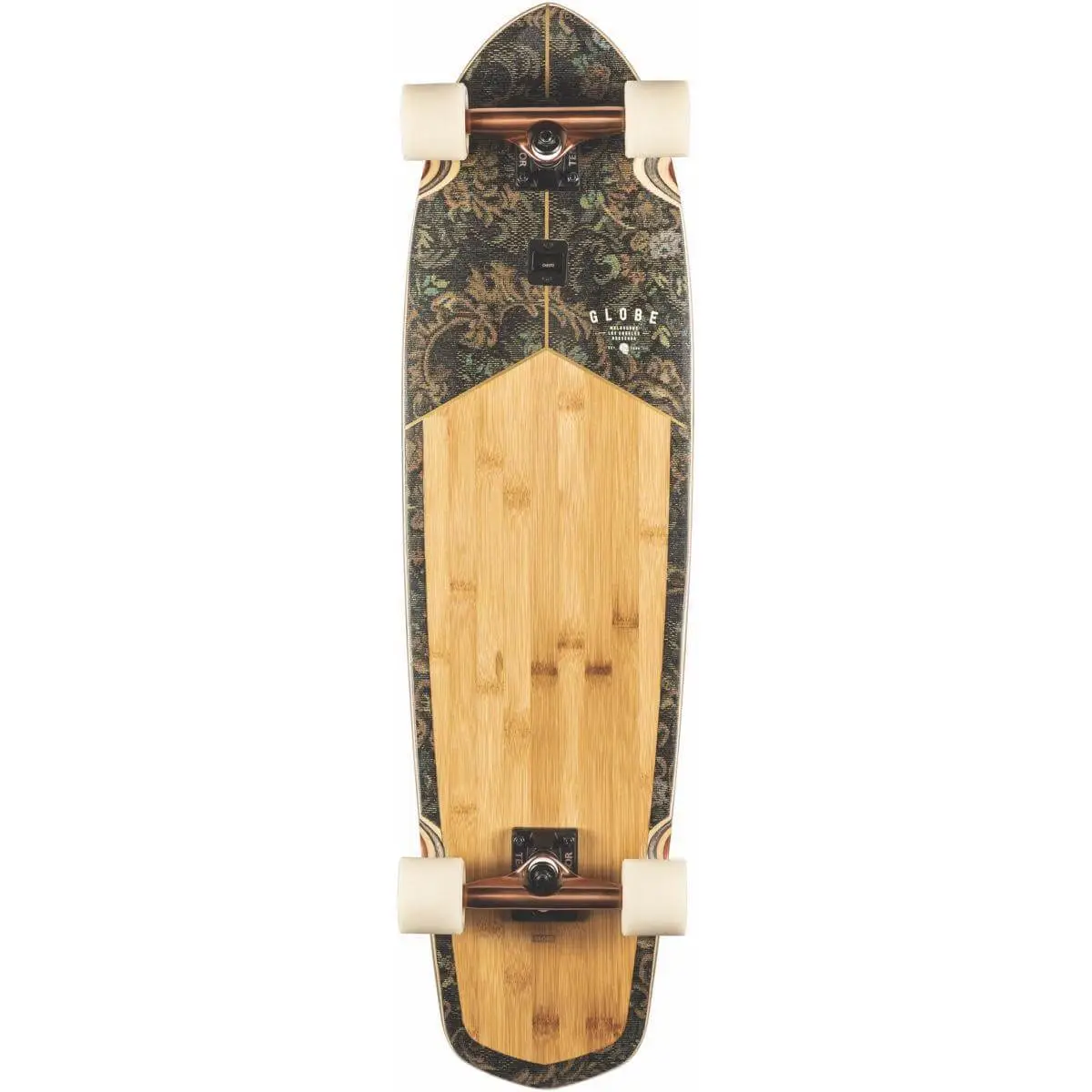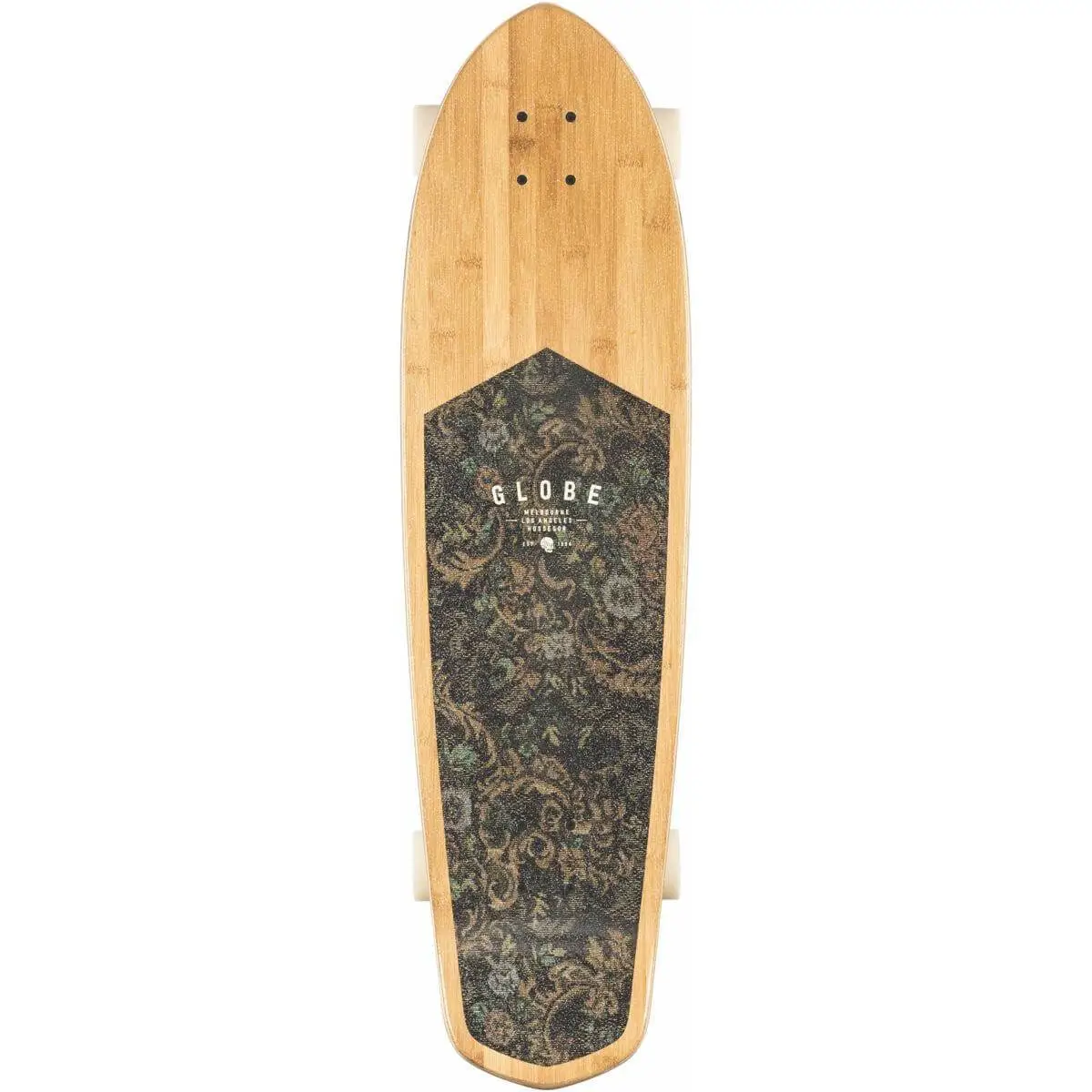 The Blazer XL in colour Bamboo/Floral Couch is a GLOBE long length diamond-tail with built-in bottle opener and soft conical wheels. It is available in size 36.25″ x 9.75″ x 21.5″WB. It is made of Bamboo. It has a mellow concave with kick tail and 6.0″ Tensor alloy trucks with 62mm 78a wheels. It features a clear broadcast grip and fabric inlay art.