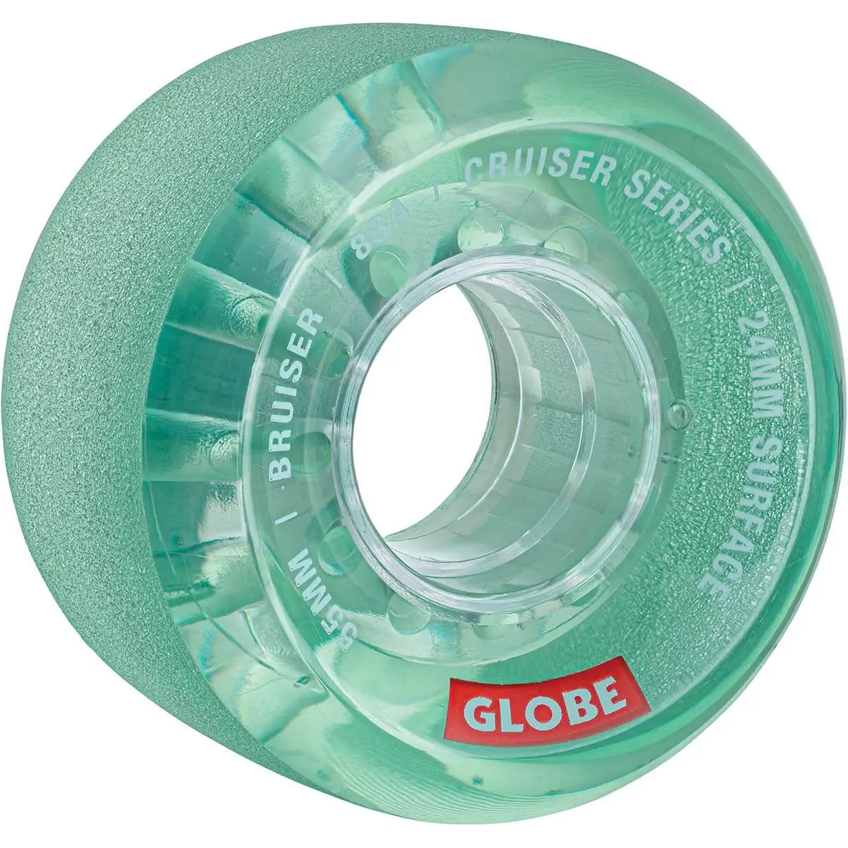 The Bruiser Cruiser Wheel in Clear Aqua is a friendly all-terrain cruiser wheel with street performance shape and characteristics. A little wider than a traditional street wheel with a face that cuts back toward the core for weight reduction and added response.
