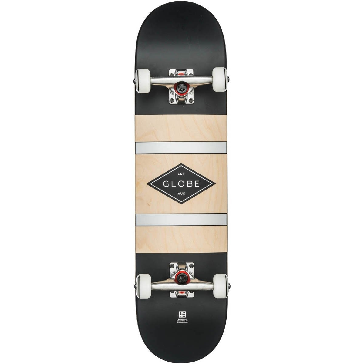 The G1 Diablo 2 street complete in color Black/Silver is a classic resin-7 complete with ABEC-7 bearings with a size of 8.0″ x 31.6″ x 14″WB. It features a Resin-7 hard rock maple base with a full concave. This Globe skateboard has 5.25″ Tensor Alloy trucks with hollow kingpin and 52mm 99a wheels. The top deck is a black grip tape