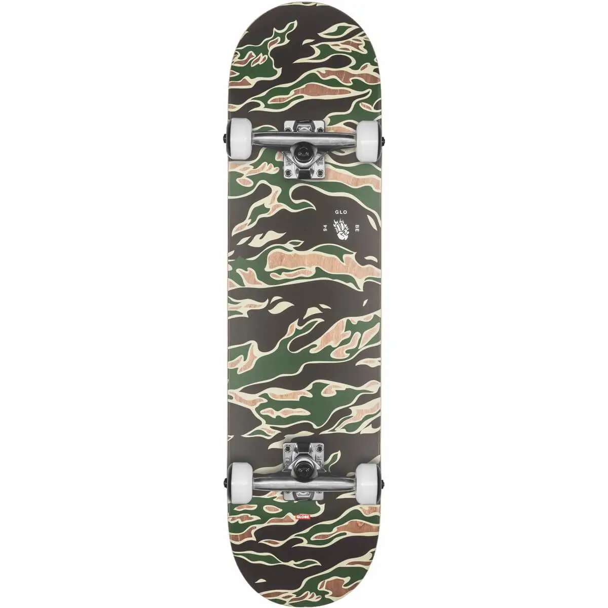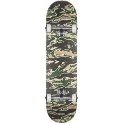 The G1 Full On in colour Tiger Camo is a GLOBE complete with ABEC-7 bearings. It is available in size 8″ x 31.63″ x 13.8″WB. It is made of Resin-7 hard rock maple. It has a full concave and 5.0″ Tensor alloy trucks with 52mm 99a wheels. It features a black griptape.