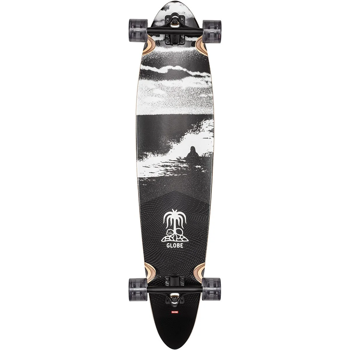 The Pinner Classic in Coconut/Black Tide in size 40 is a Longboards. It features Resin-8 hard rock maple classic pintail longboard with a kicktail, Mellow concave with kicktail, 180mm Slant reverse kingpin trucks and 65mm 78a wheels. It also has Clear broadcast and black griptape, and .Dimensions: 40″ x 9″ x 26.75″WB