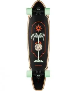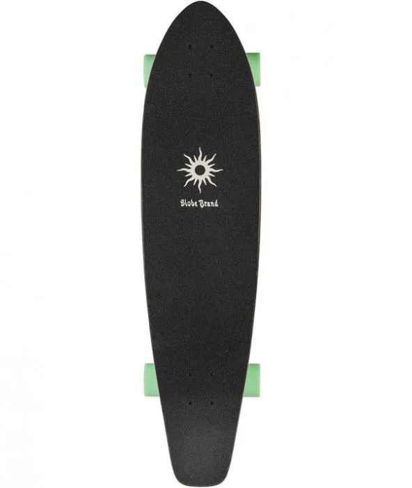 The The All-Time in colour skewerd is a GLOBE long wheelbase classic cruiser shape with kick tail. It is available in size 35.875″ x 9.0″ x 22.25″WB. It is made of Resin-8 hard rock maple. It has a mellow concave with kick tail and 150mm Slant reverse kingpin trucks with 65mm 78a wheels. It features a black griptape with print.