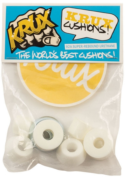 Deze Krux Bushing set met hardheid 92a is compleet om 2 trucks helemaal te voorzien van vers rubber.