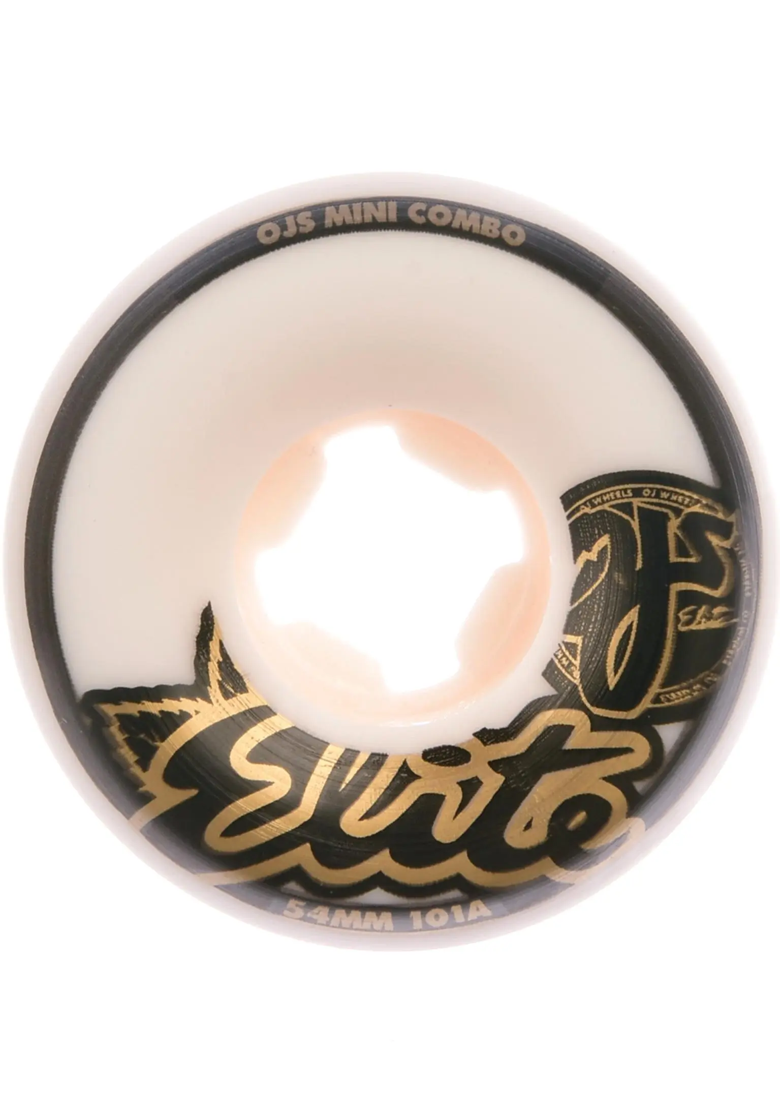 OJ Wheels 58mm Elite Mini Combo II 101A Skateboardwielen White -Skateboards Winkel oj wheels rollen elite mini combo ii 101a white closeup1 0134553 3