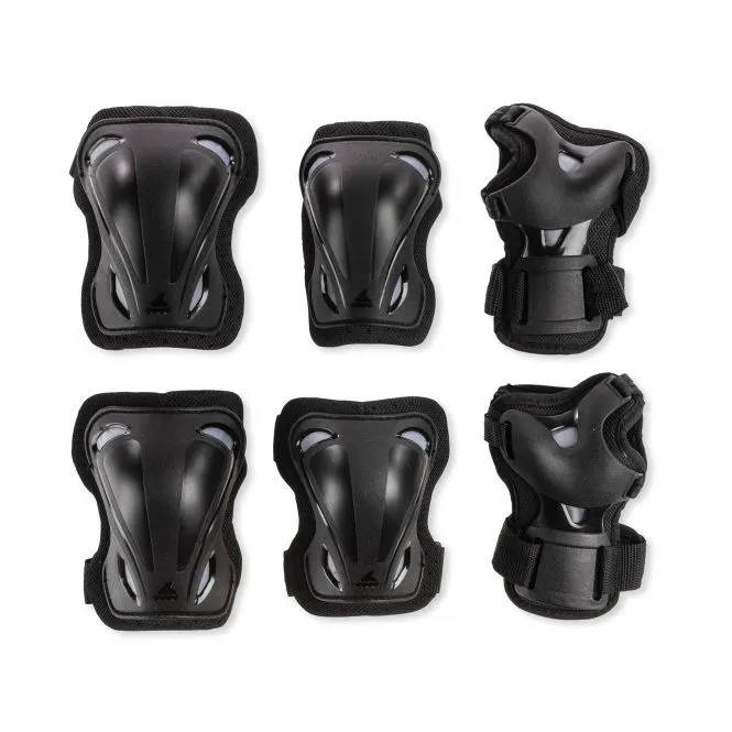 The Skate Gear 3 pack is value-priced protective gear designed for all levels. Anatomically left/right designed with protective caps, the easy-strap closure system ensures a correct fit.