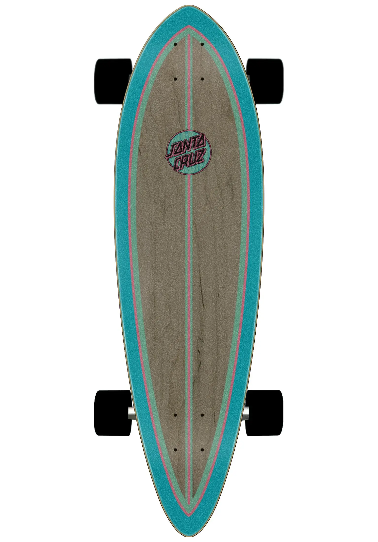 Santa Cruz Skateboards Cabana Dot Pintail Longboard Cruzer featuring updated, smaller pintail shape on 9 ply deck with Bullet 160mm reverse kingpin trucks and Santa Cruz branded 60mm 78a Slimeballs wheels