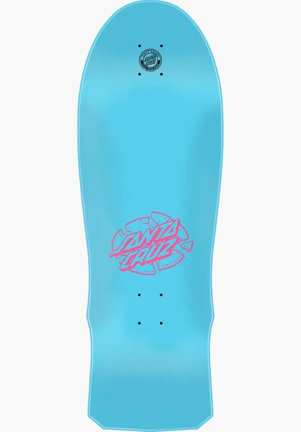 Santa Cruz Skateboards Claus Grabke Exploding Clock Reissue deck featuring spot graphic on full dip light blue deck and 50th Anniversary decktop laser etched logo.