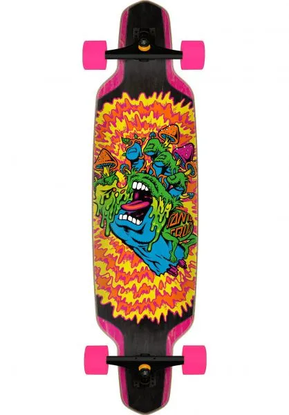 Santa Cruz Skateboards Wave Dot Splice Drop Thru Longboard Cruzer featuring medium sized drop through shaped 9 ply deck with Bullet 180mm reverse kingpin downhill trucks and 66mm 78a Santa Cruz branded Slimeballs wheels.