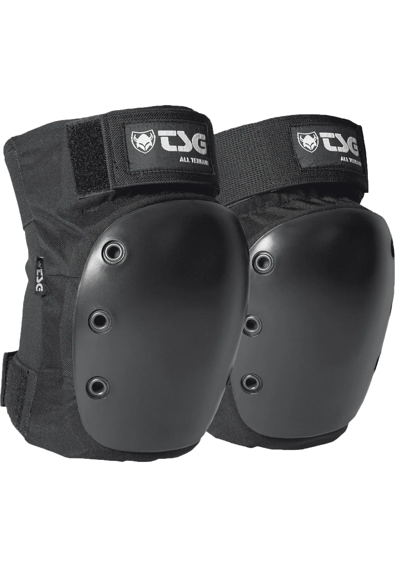 Hardshell covered pads reduce friction against the ground in case of a fall. Maximum protection from impacts often associated with pedals, rocks and other objects found on varied terrain or falls from great heights on concrete or wooden ramps.
